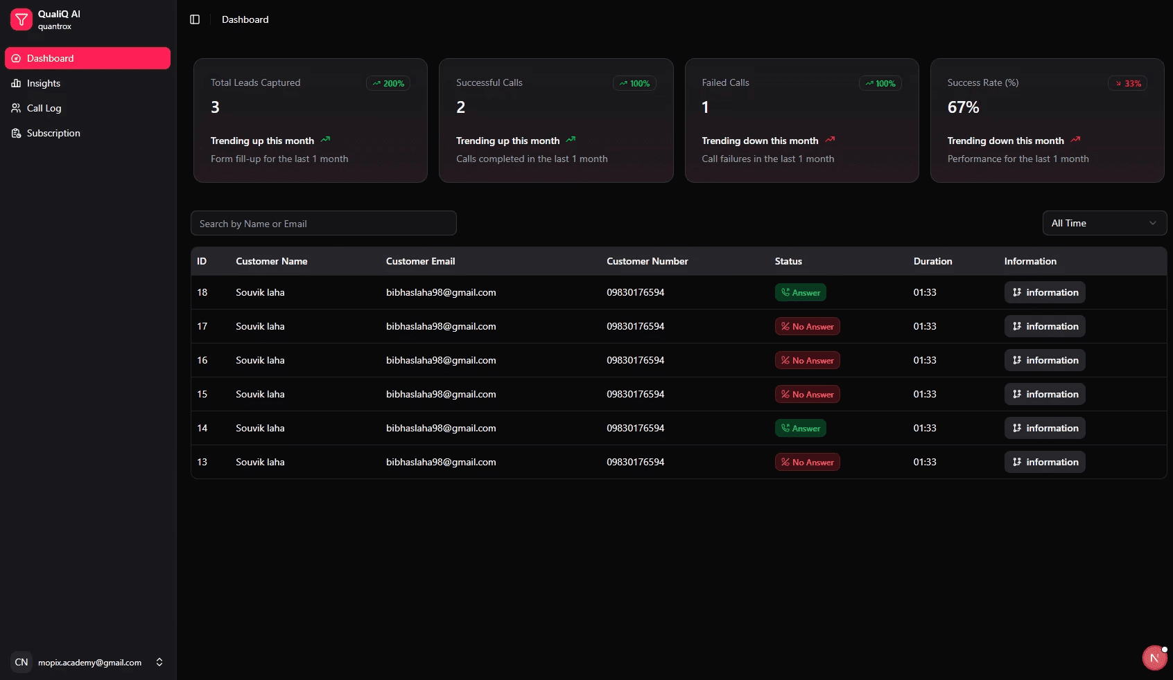 Yes. QualiQ AI provides real-time call logs, recordings, and organized data, making it easy to review and prepare for your sales pitches.